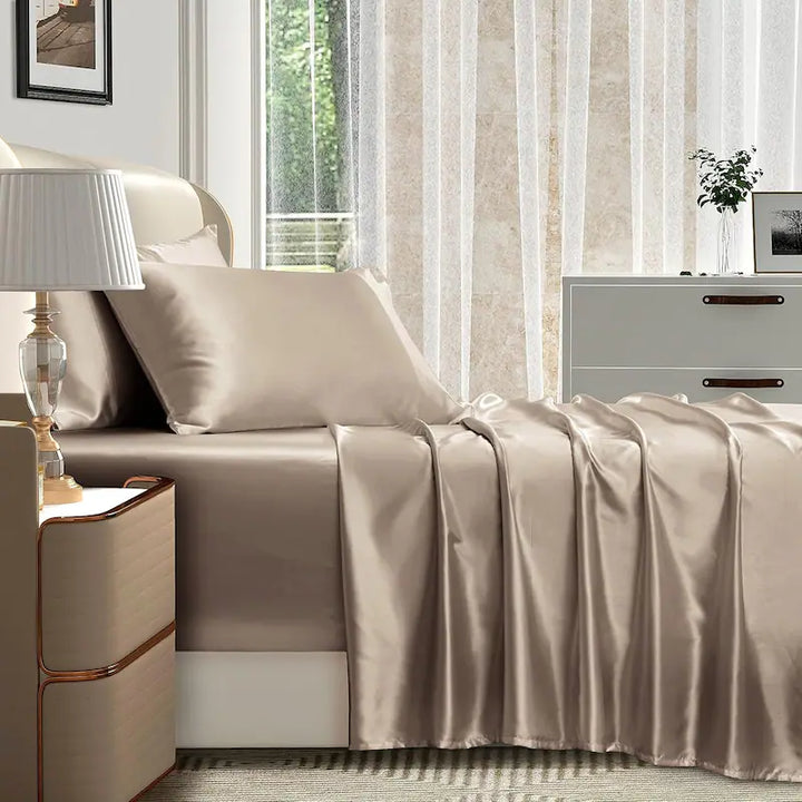Осигурете комфортен сън и блясък в спалнята си. Изискани спални комплекти в нежни цветове. Плътна материя, отличаваща се с мекота и фин блясък.